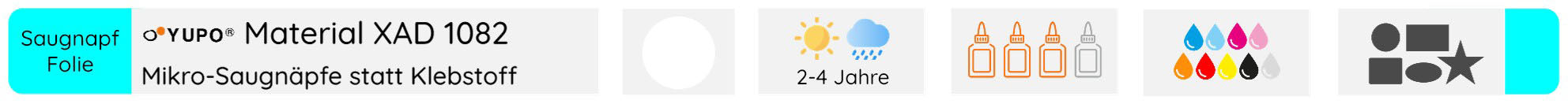 Die Haftfolie YUPOTako® XAD haftet zuverlässig auf allen glatten Oberflächen wie Glas, Fliesen oder Möbeln. Dank ihrer mikrofeinen Saugnapfstruktur kommt sie ganz ohne Klebstoff aus – so entstehen weder ein klebriges Gefühl noch unschöne Rückstände.