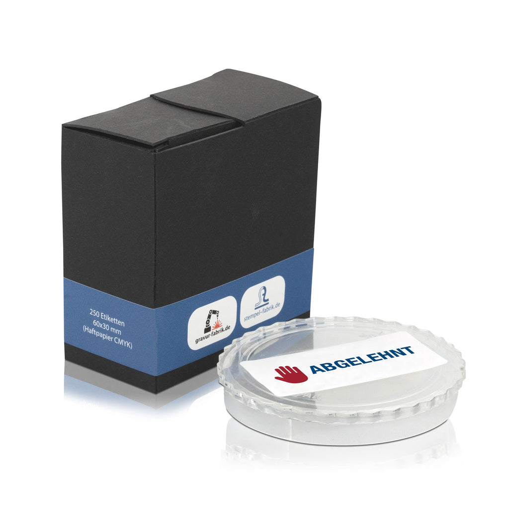 - Aufkleber 60x30 mm (Druckfläche 54x26 mm), inklusive Digitaldruck 4-farbig